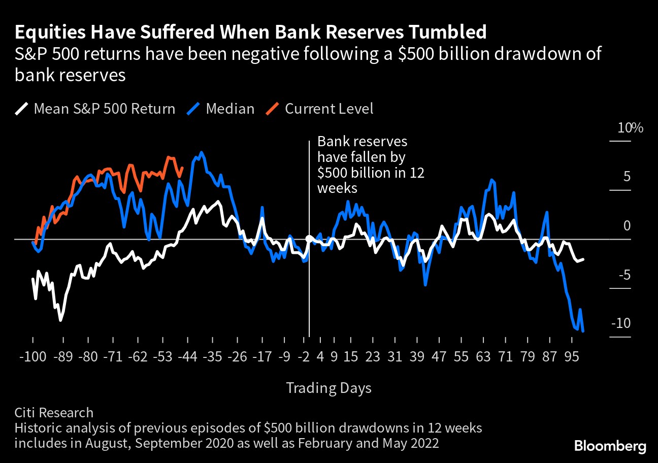 “Any decline in bank reserves is typically a headwind,” says Dirk Willer, Citigroup Global Markets Inc.'s head of global macro strategy.