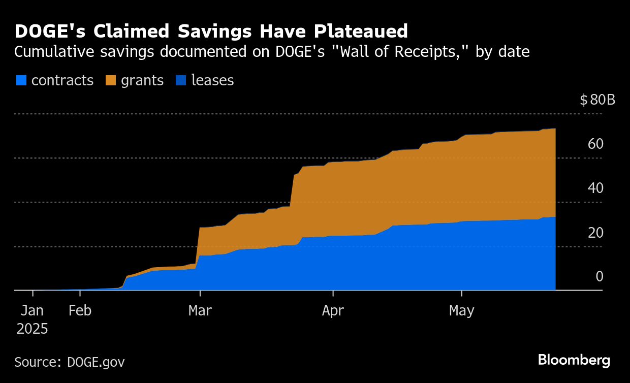 That's way above even DOGE's most optimistic savings estimates. Its government website listing estimated savings states that DOGE has saved taxpayers about $180 billion year-to-date. However its “Wall of Receipts” — a line-by-line list of contracts, grants and leases canceled since Inauguration Day — only accounts for less than half of that number.