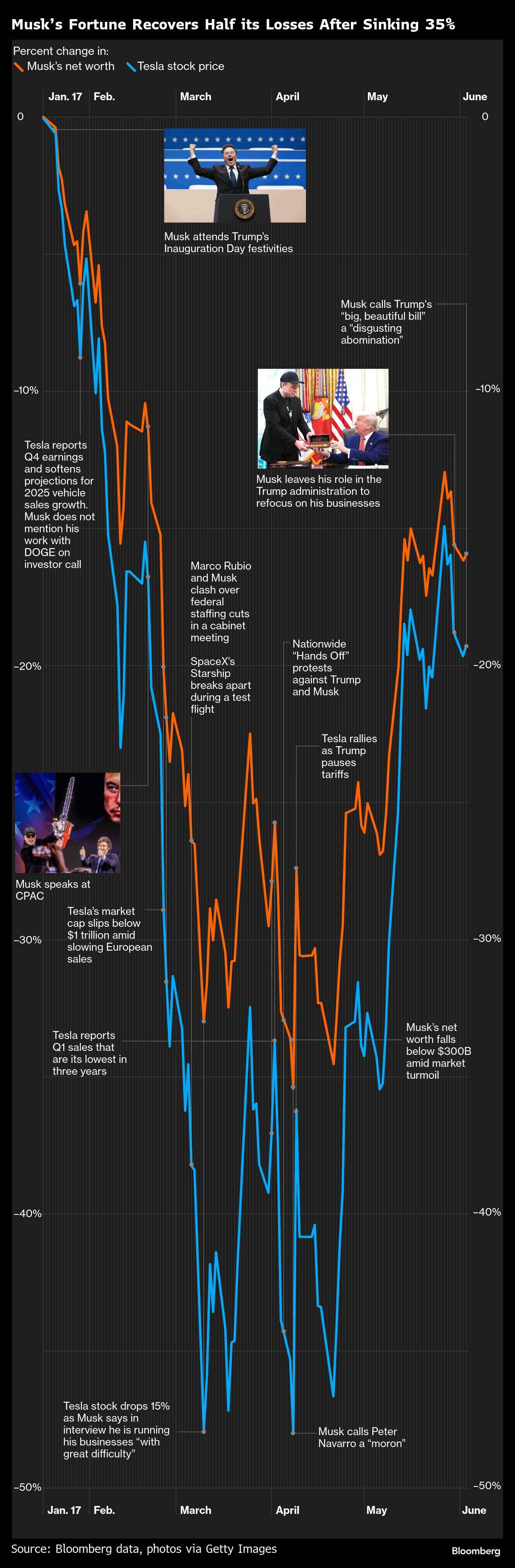 Yet swift progress on conservative priorities came with a price tag for Musk, who has seen his own net worth plummet in part because of reputational tarnish at home and abroad from his political actions and affiliation with Trump.