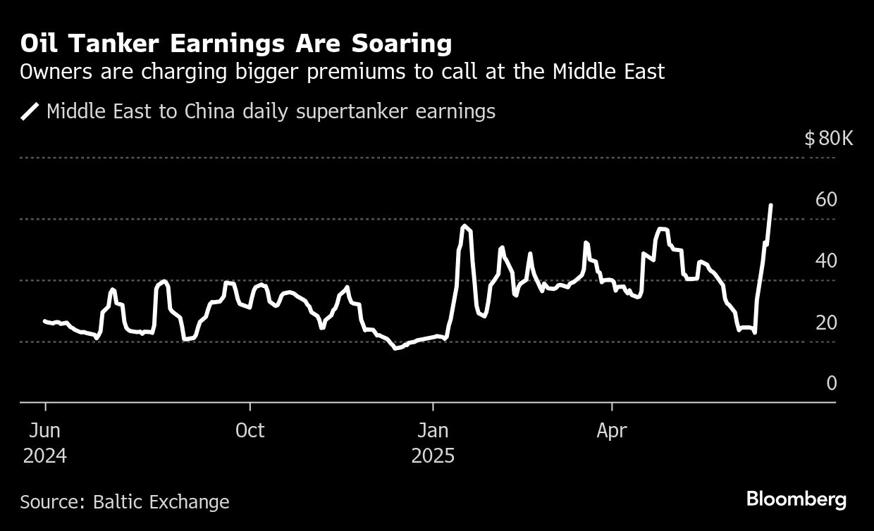 The cost of hiring a ship to carry crude from the Middle East to China has jumped close to 90% since before Israeli attacks began. Earnings for vessels carrying fuels like gasoline and jet fuel have also leaped, as have insurance premiums.