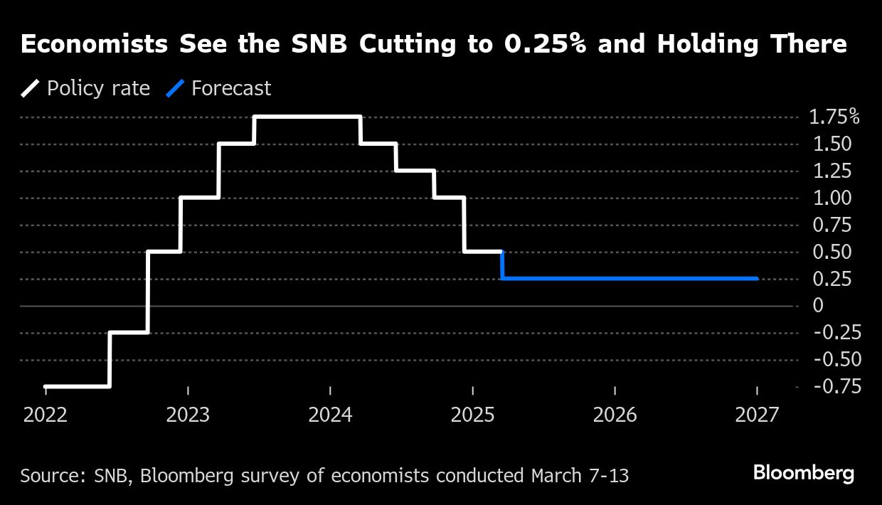 Economists expect officials to lower borrowing costs twice this year, starting in September, according to a Bloomberg survey. For now, policymakers have signaled they're in a wait-and-see mode as they seek further progress on inflation and greater clarity on the economic impact of Trump's policies.