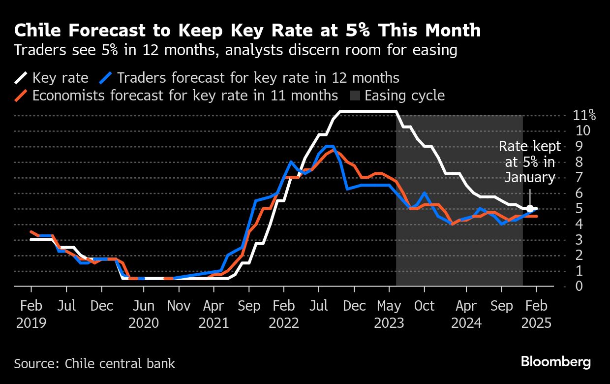 Sticky and stubbornly elevated inflation, risks skewed to the upside, and wobbles in expectations persuaded Chile's central bank to keep its 5% rate unchanged in January.