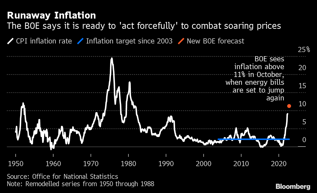 Meanwhile the BOE, which says it can do nothing to stop the spike in prices this year, is adding to the short-term pain of some households by hiking rates at an unprecedented pace.