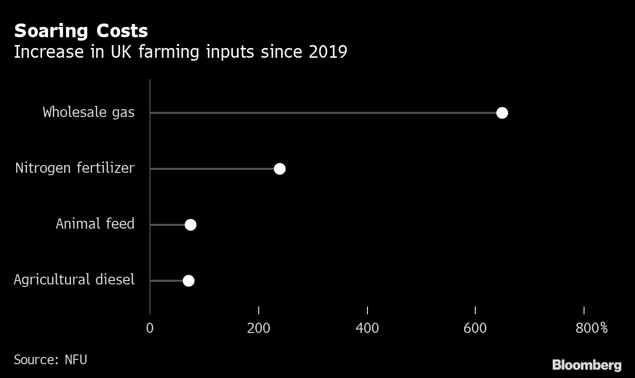 Britain's egg supply chain is already hobbled, and fruit and vegetable growers are in the firing line amid soaring energy costs and worker shortages. Other agricultural sectors also risk supply disruptions, said the union, which called on the government to set targets for domestic food security and support growers through the energy crisis.