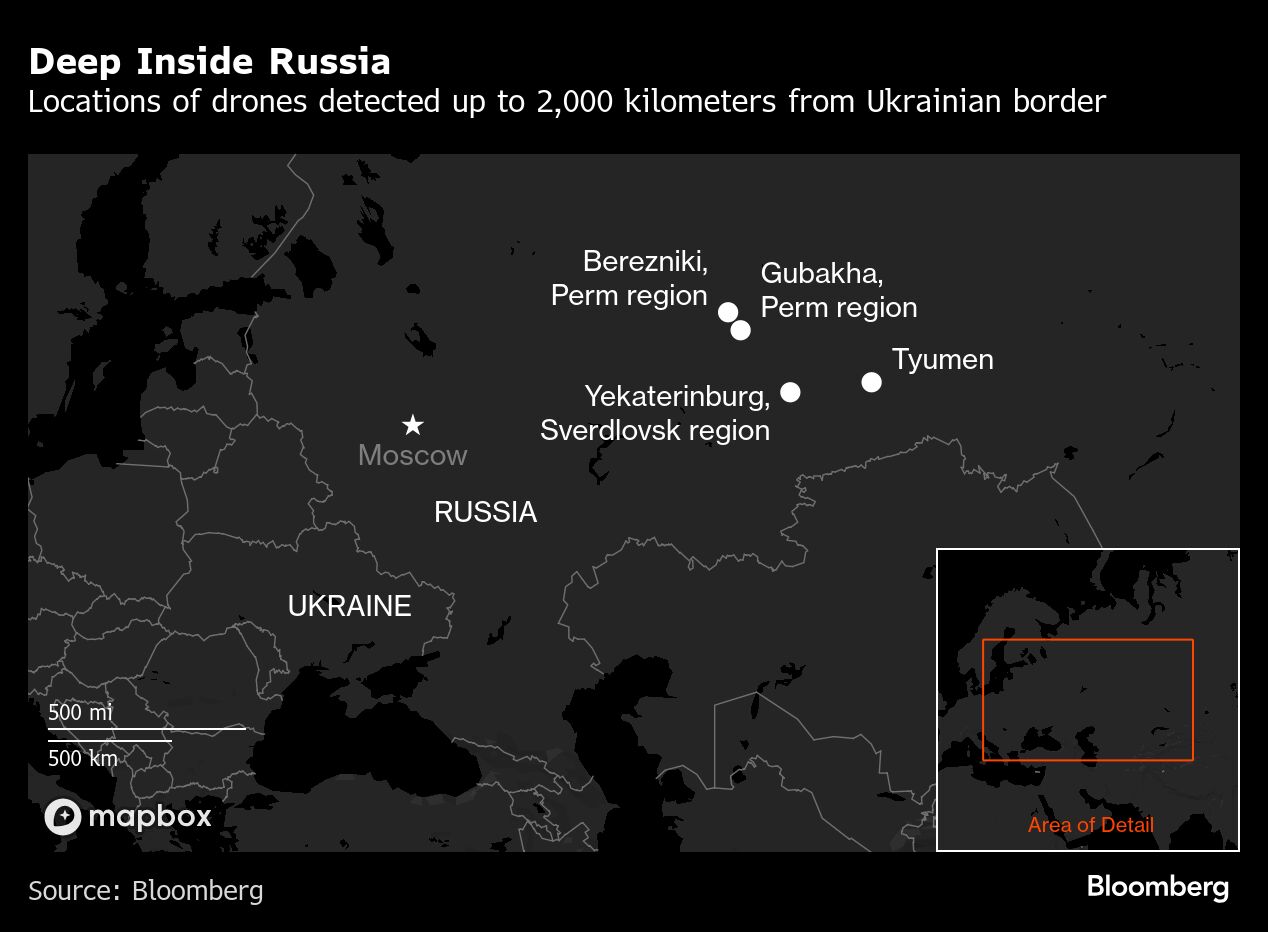 Russia over the past month has reported a growing number of drone attacks deep inside its territory, with some reaching nearly 2,000 kilometers from the Ukrainian border — further testing the country's air defenses. Ukrainian UAVs have targeted facilities as far afield as Siberia and the Ural mountains.