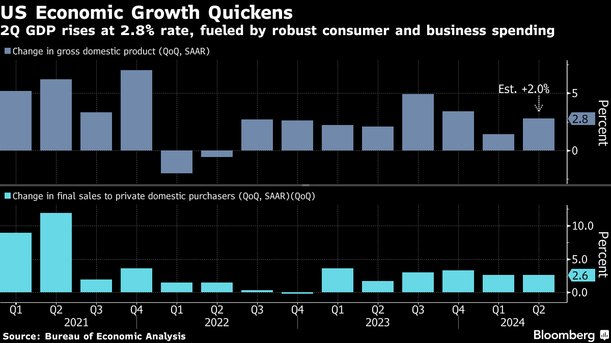 (Bloomberg) -- US economic growth accelerated by more than forecast in the second quarter, illustrating demand is holding up under the weight of higher borrowing costs.
