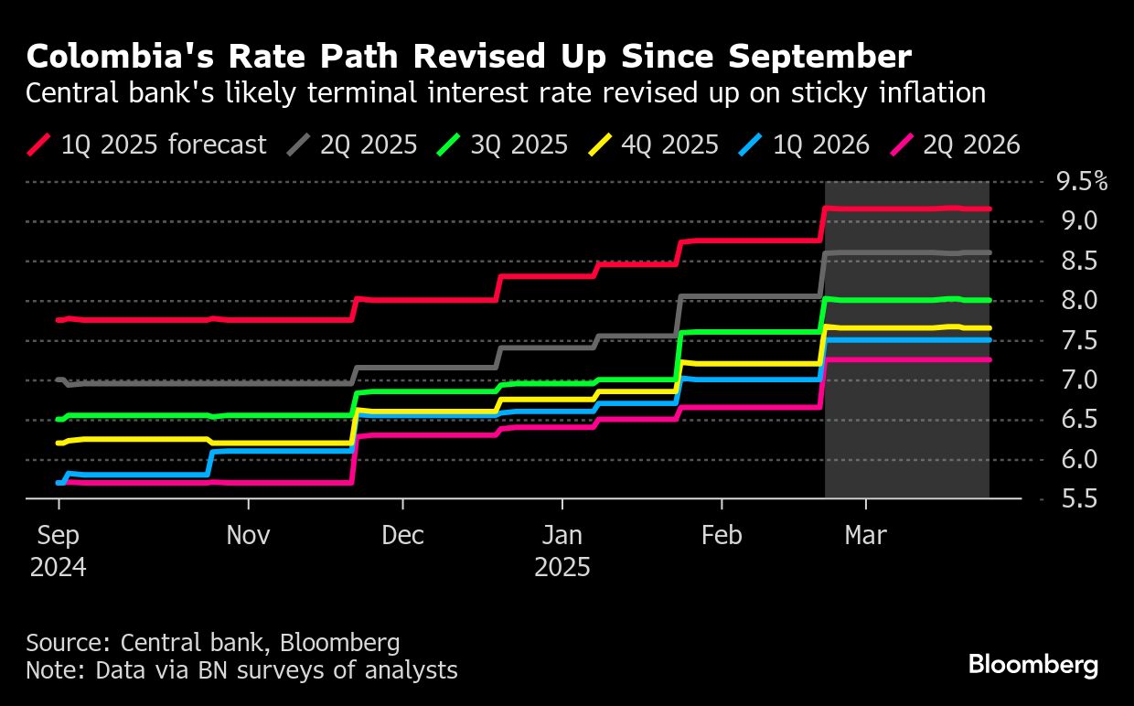 But sticky inflation and expectations may sideline BanRep for a second meeting, with the key rate held at 9.5%. Minutes of the deliberations are published late Thursday.