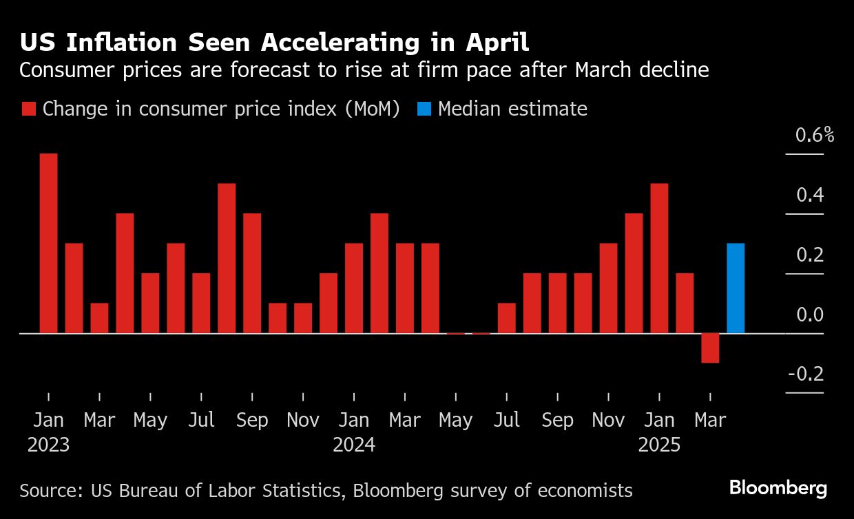 US inflation likely accelerated in April after an unexpected cooldown the previous month, with higher tariffs on Chinese goods in particular starting to impact prices.