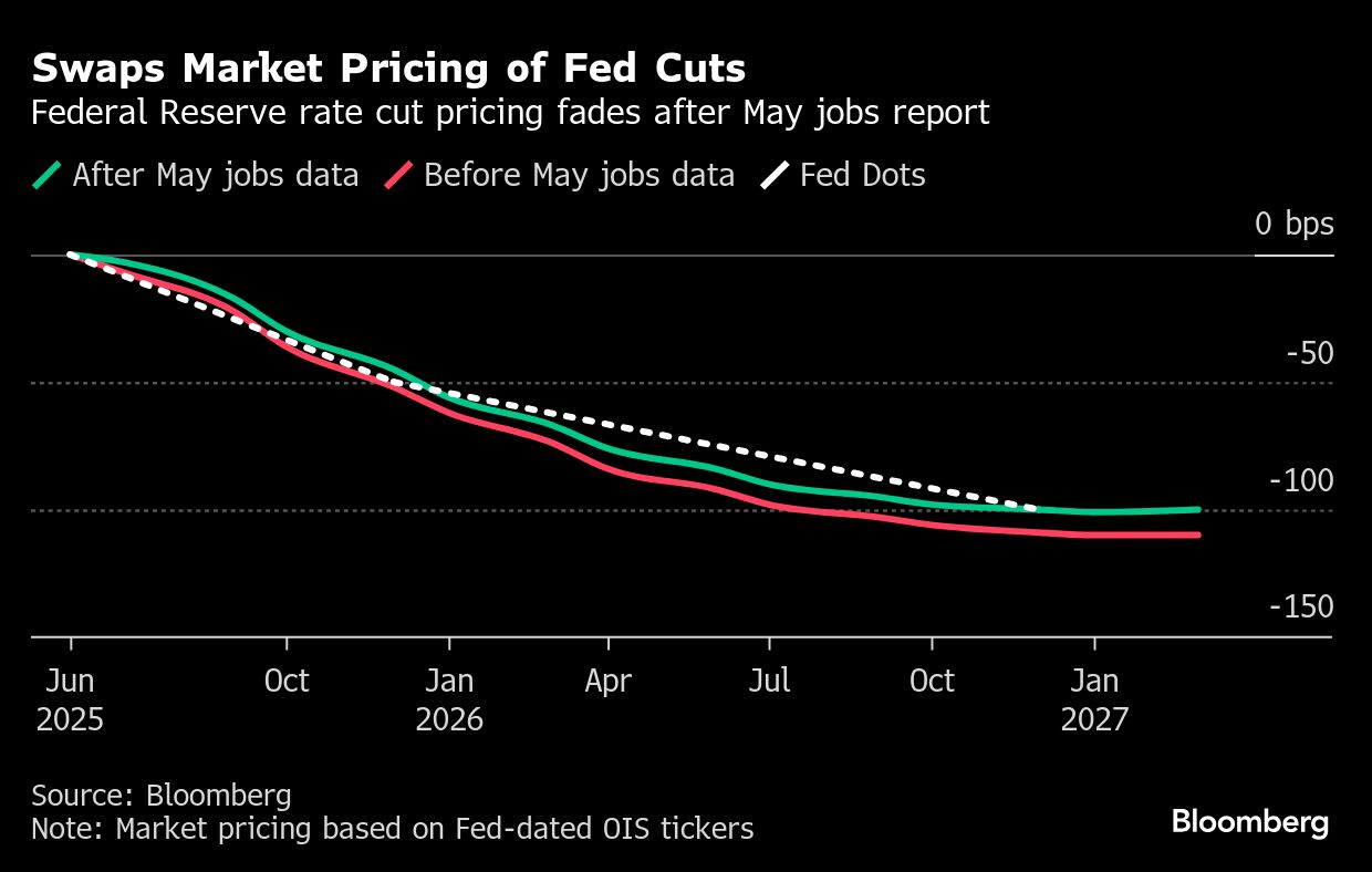 While US job growth moderated in May and the prior months were revised lower, Friday's report narrowly exceeded forecasts, bolstering bulls who were primed for disappointment after data this week raised doubts about the buoyancy of American hiring.