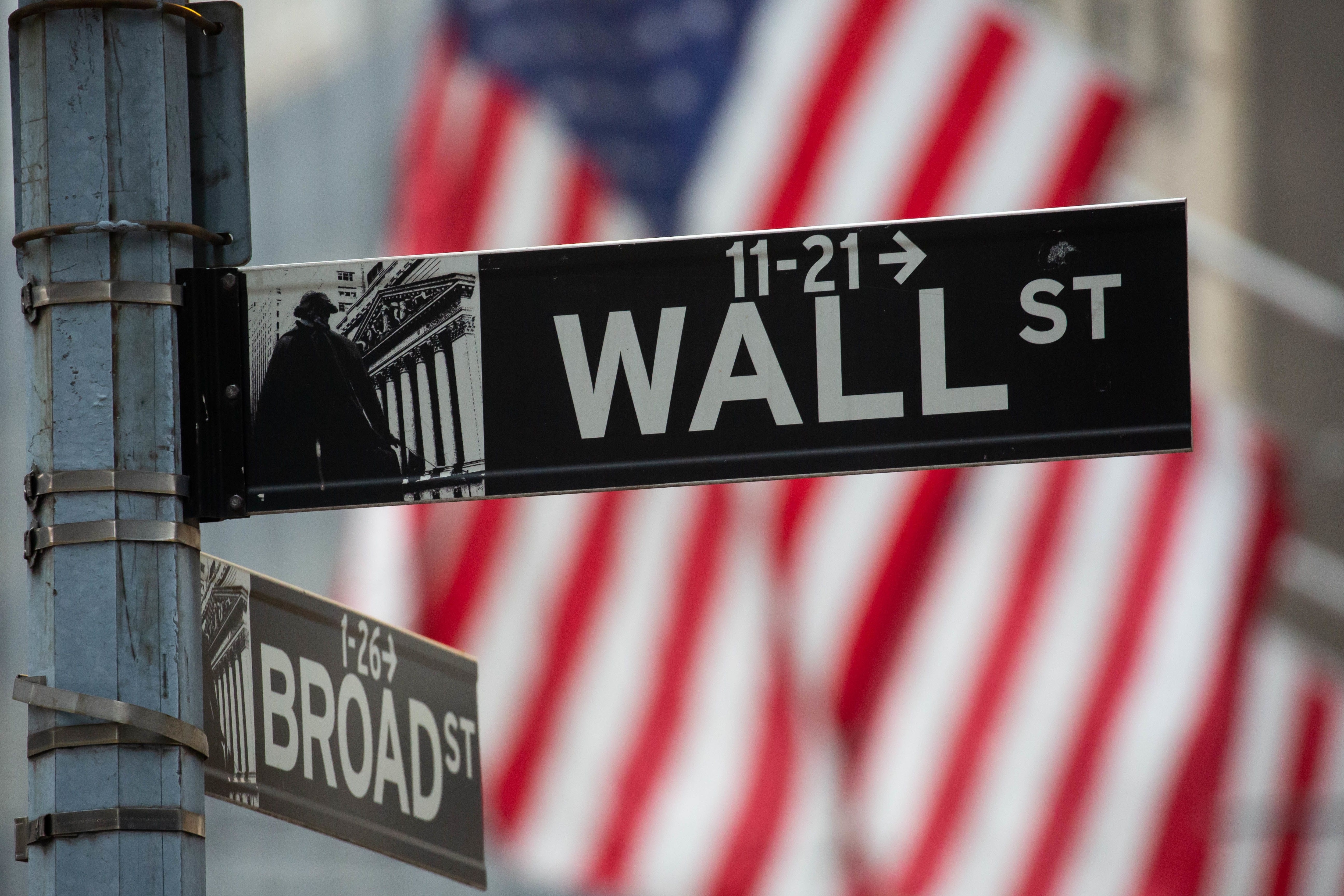 A Wall Street street sign in front of the New York Stock Exchange (NYSE) in New York, U.S., on Friday, Dec. 31, 2021. U.S. stocks swung between gains and losses, with moves exacerbated by thin trading on the last session of the year. Photographer: Michael Nagle/Bloomberg