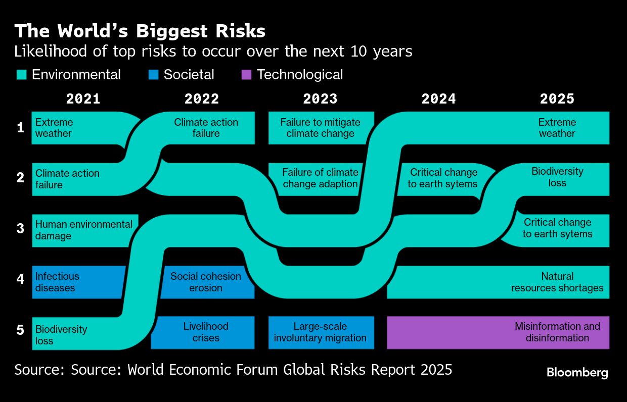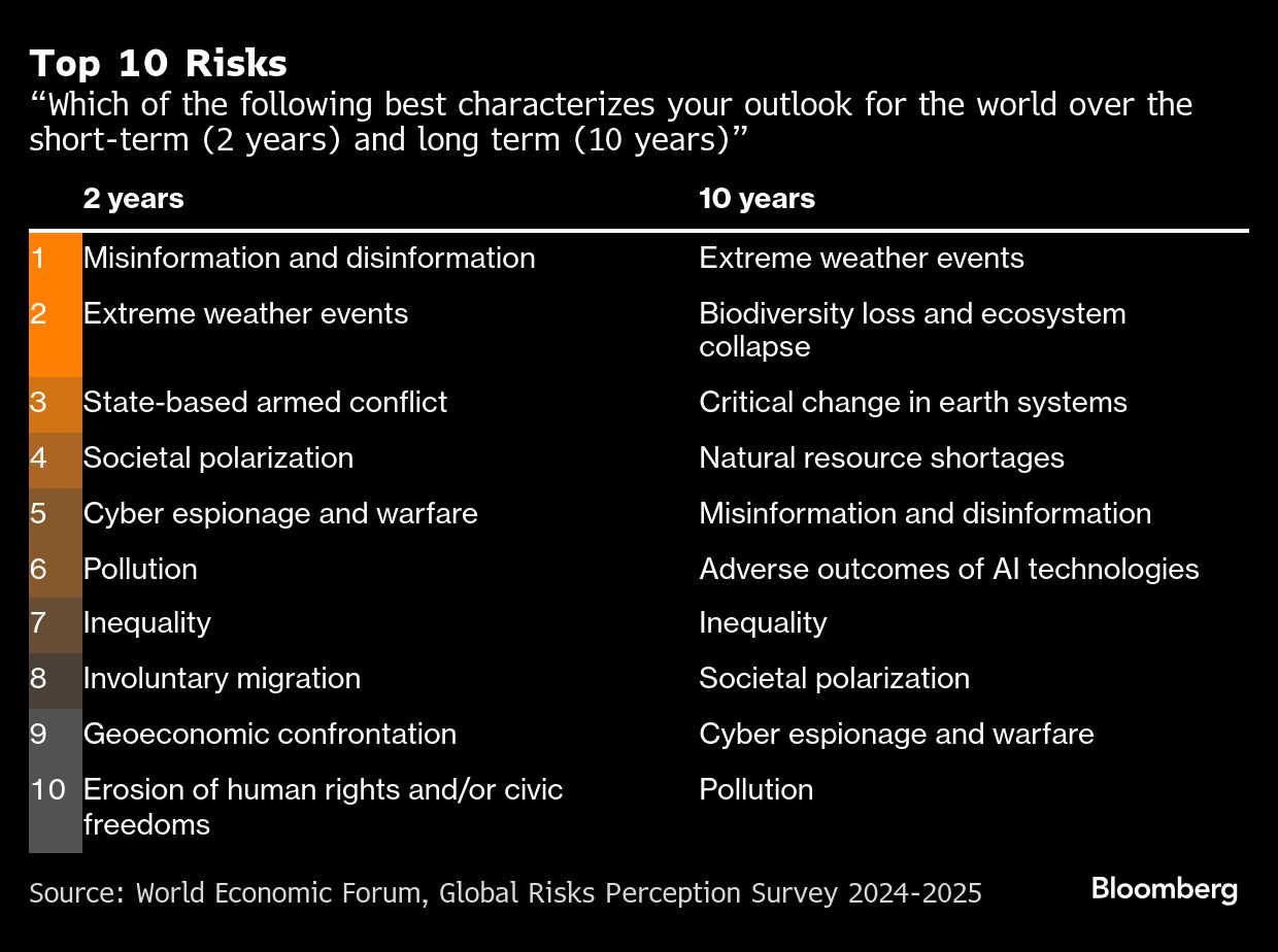 That reflects “respondents' concerns about the heightened frequency or intensity of these risks as the next decade unfolds,” the report said.