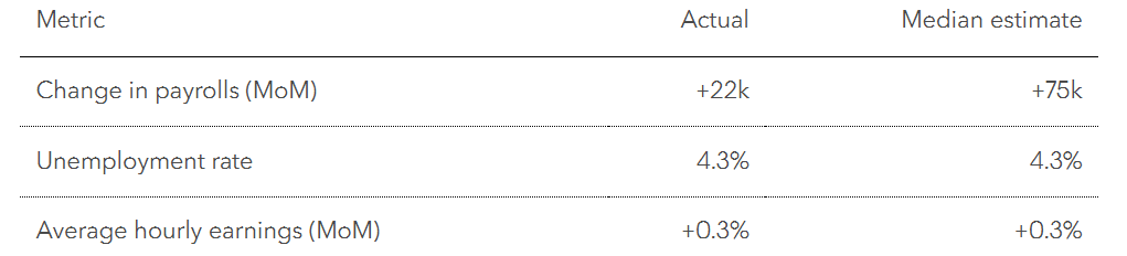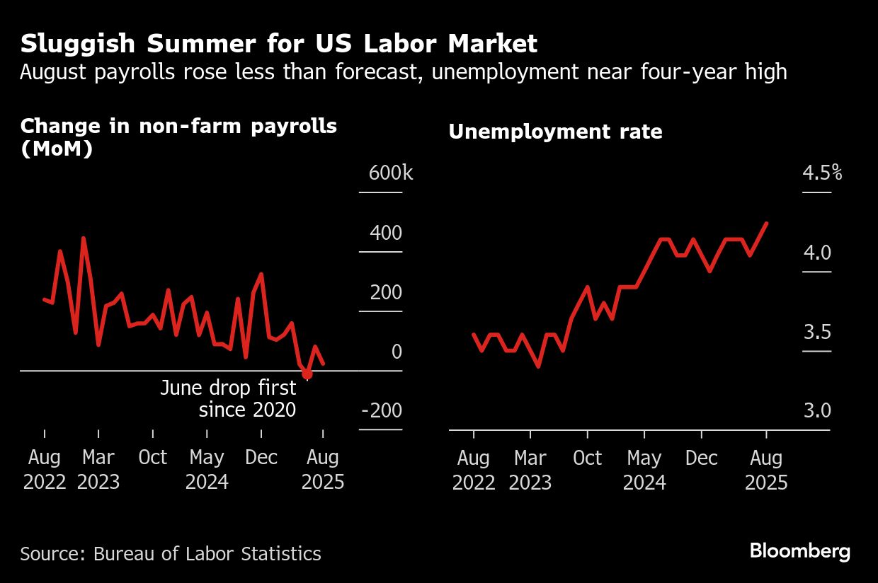 Nonfarm payrolls increased 22,000 in August, and revisions showed employment shrank in June for the first time since 2020. The jobless rate ticked up to 4.3%, according to a Bureau of Labor Statistics report out Friday.