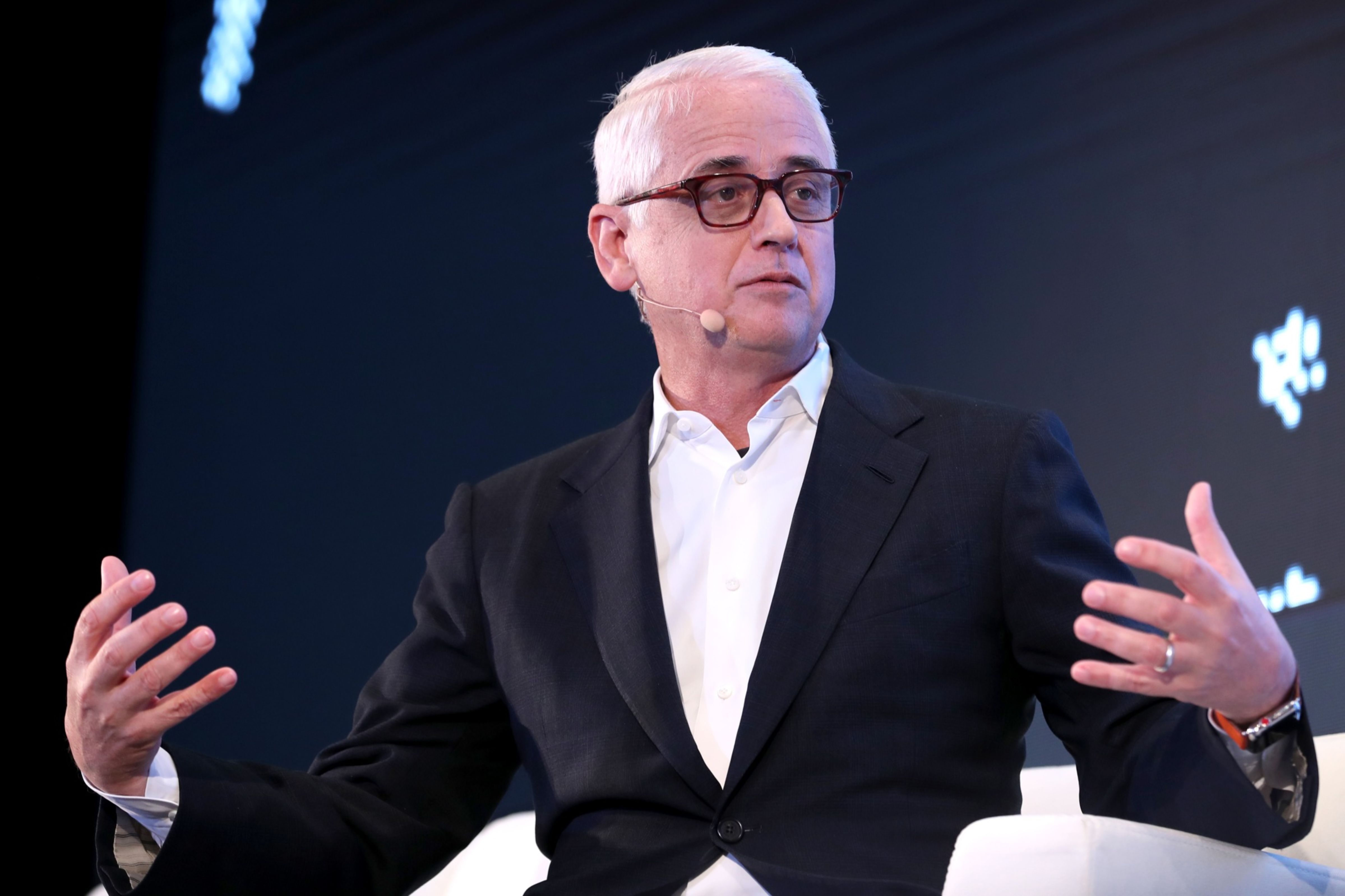 David Kenny, chief executive officer of Nielsen Holdings Plc, gestures as he speaks at the Bloomberg Sooner Than You Think technology event in Singapore on Sept. 5, 2019. (Photographer: Paul Miller/Bloomberg)