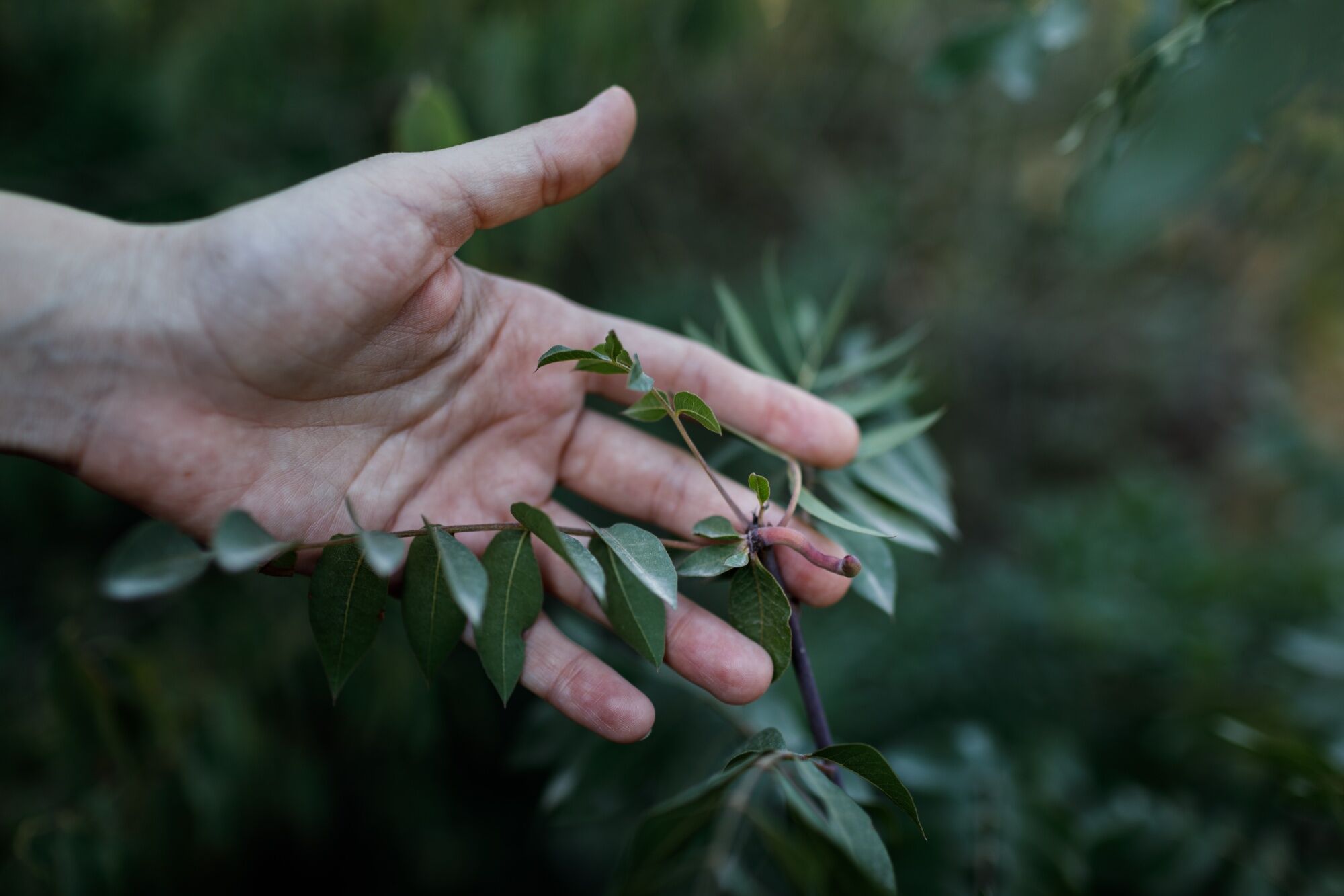 Architect Deema Assaf checks a rare wild Pistacia Palaestina tree in her 2-year-old mini-forest in the Marka neighbourhood of Amman, Jordan, on Monday, Aug. 7, 2023. The mini-forests are full of native species that were specially chosen because they can survive in extremely arid landscapes and are arranged so they can grow into a dense forest within decades. Photographer: Annie Sakkab/Bloomberg