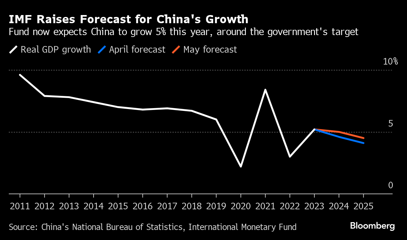 The International Monetary Fund now expects China's economy to grow 5% this year, raising its forecast from 4.6% a few weeks ago to reflect a strong expansion at the start of 2024 and additional support from the government. The IMF has called on Beijing to provide more monetary and fiscal support, including further steps to resolve the housing crisis, which has persisted despite repeated efforts by authorities to put a floor under prices and boost demand.