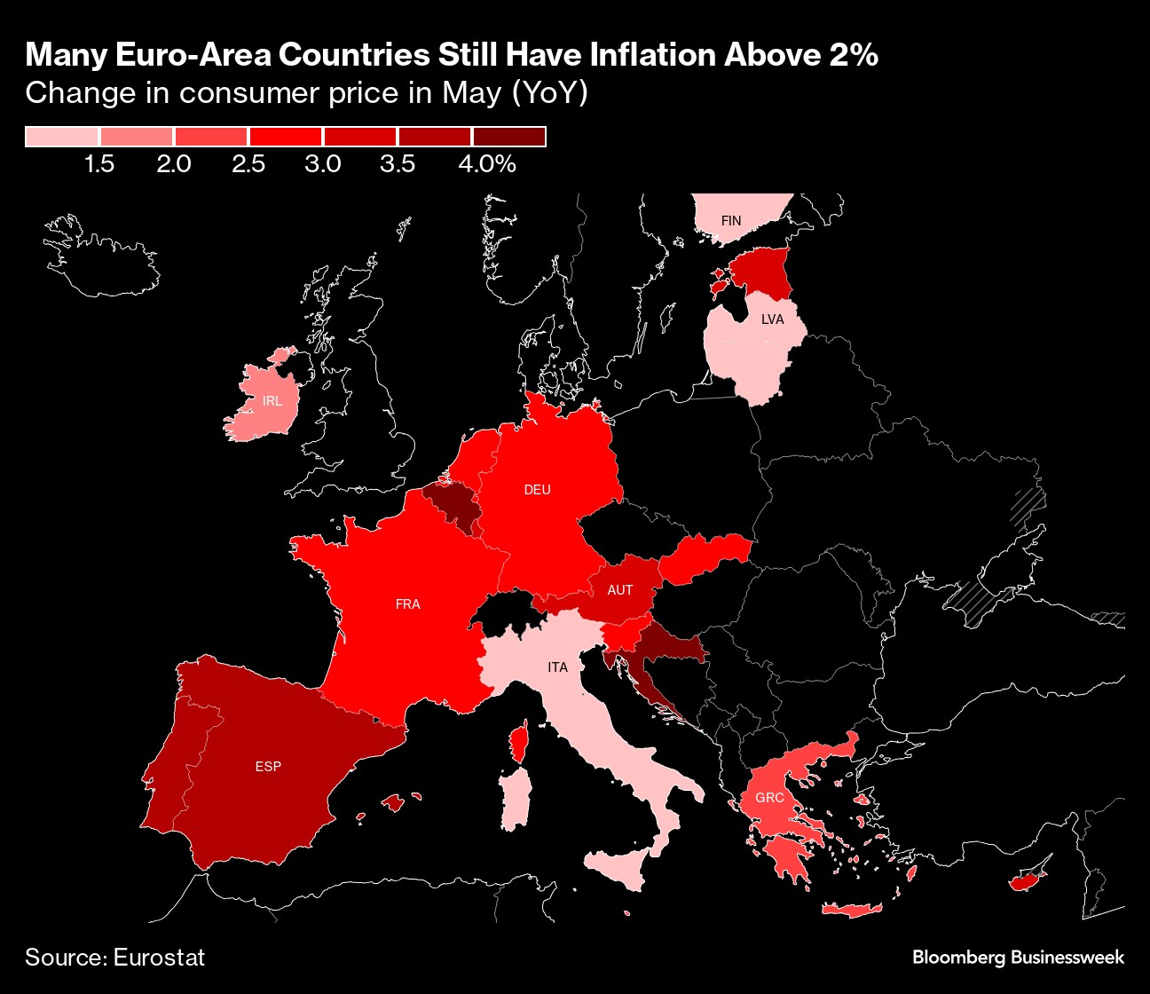 (Bloomberg) -- Inflation in Europe accelerated by more than forecast in May, but the European Central Bank is still expected to start cutting interest rates next week.