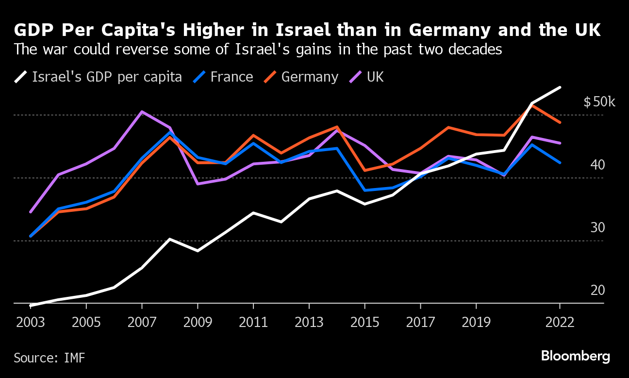 Israel's military call-ups and partial economic freeze have triggered a sudden crash in activity and upended everything from banking to agriculture in its war against Hamas. They're costing the government the equivalent of $2.5 billion a month, according to Mizrahi-Tefahot, a top Israeli lender.