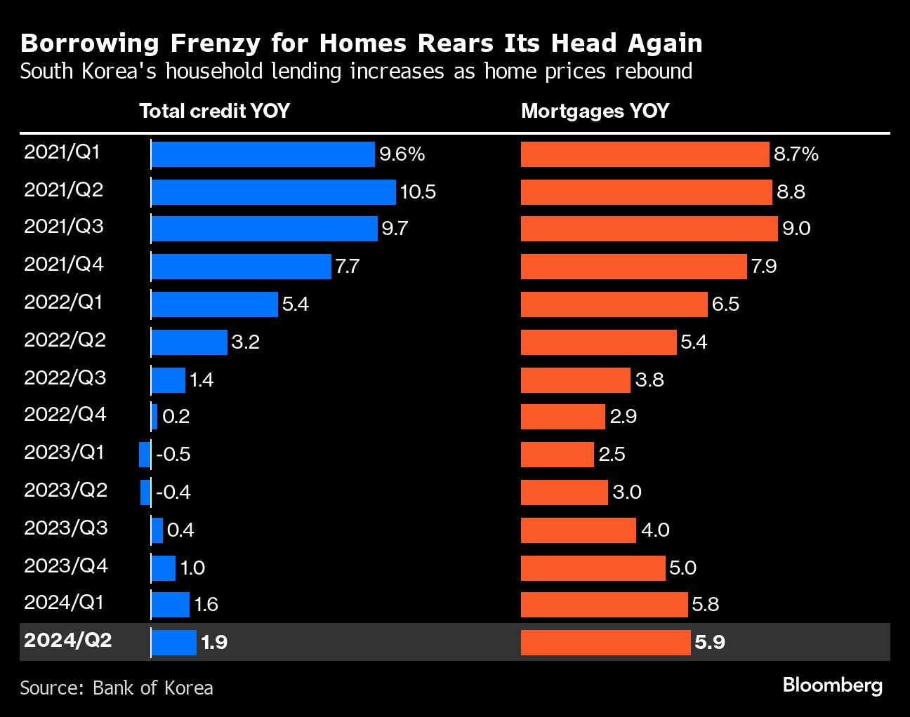 South Korea's household debt grew at a quickening clip last quarter, spurred by mortgage loans. South Korea has one of the highest household debt-to-economy ratios in the world, with many people holding the bulk of their wealth in real estate.