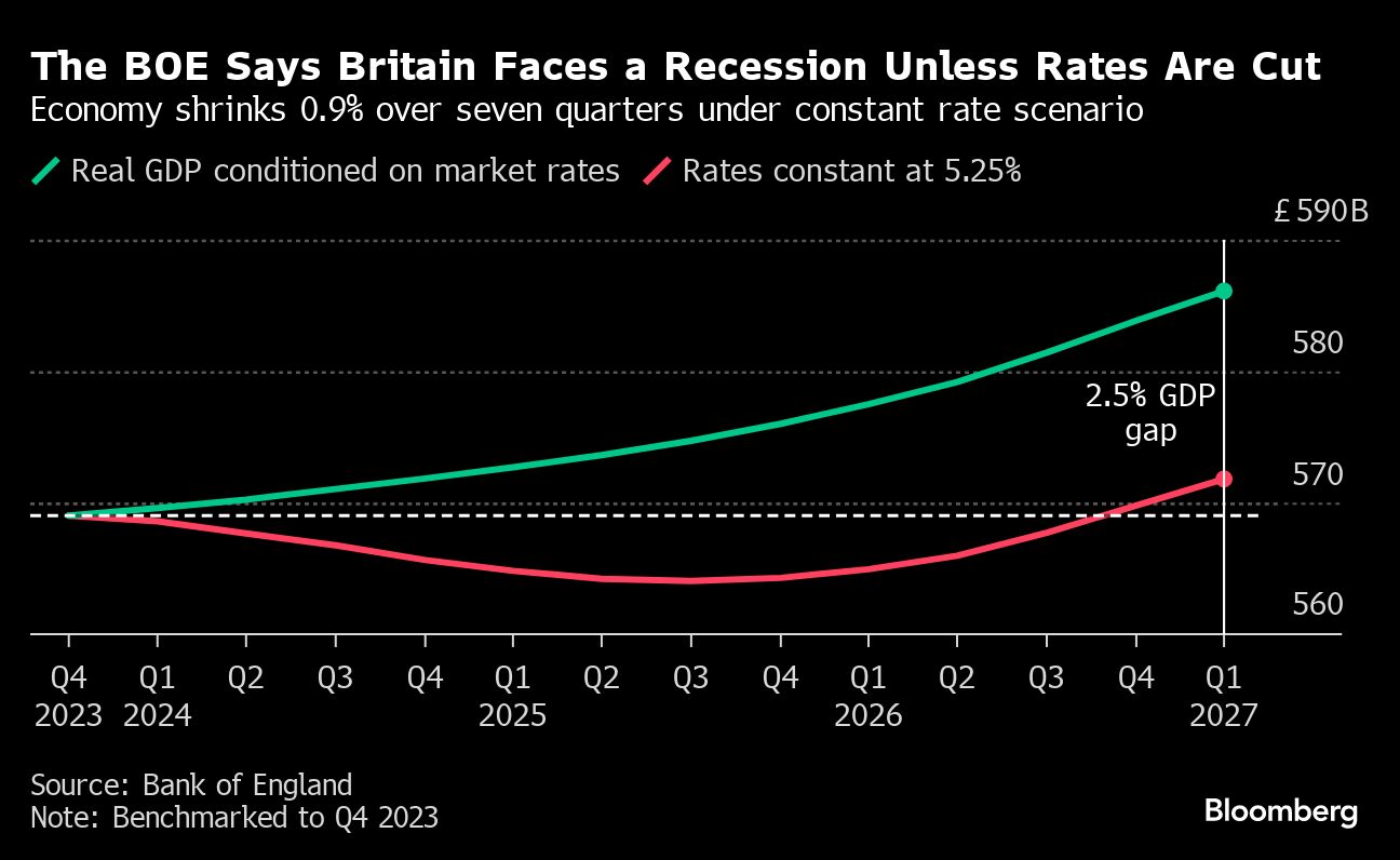The next day, GDP will point to how BOE tightening is hitting growth. Economists reckon the UK stagnated in the fourth quarter, narrowly avoiding a recession for now.