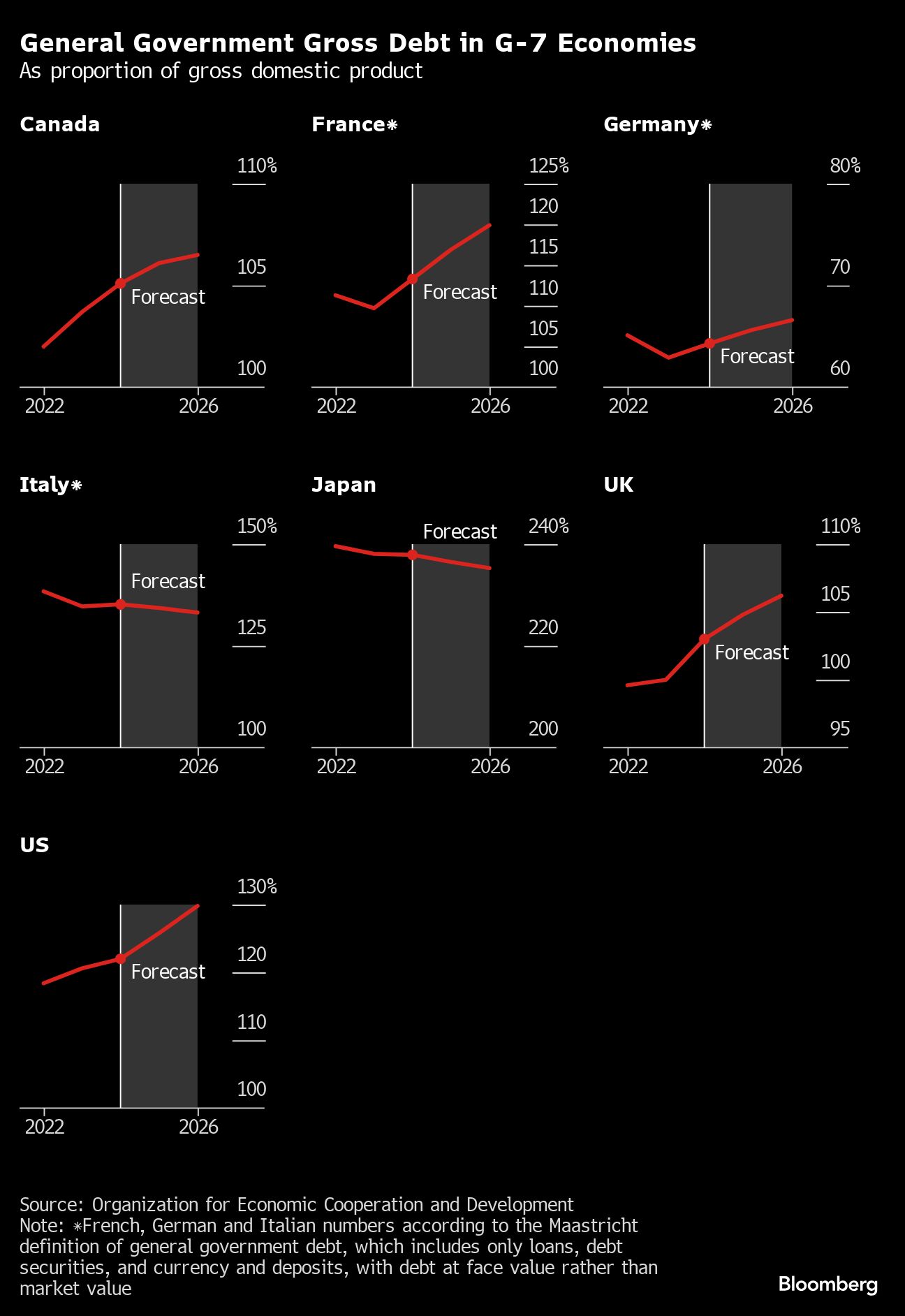 For the OECD as a whole, that ratio will reach 117% by the end of 2026, up nine percentage points from before the pandemic, the forecasts show.