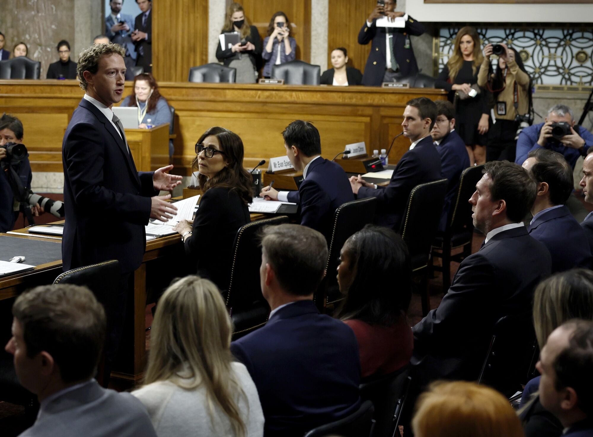 The impromptu moment came during an hours-long Senate hearing on protecting children online. Zuckerberg had faced intense criticism and pressure from Missouri Senator Josh Hawley, who ripped into the executive personally and blamed Meta's photo sharing app, Instagram, for an alleged failure to protect its young users against mental health issues and exposure to sexually explicit content.